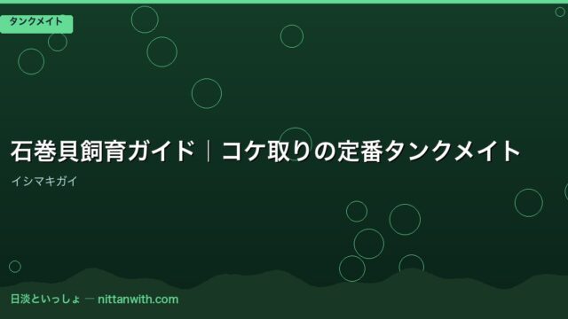 タンクメイト 石巻貝(イシマキガイ)飼育ガイド|コケ取りの定番タンクメイト 2026年3月30日 nittantoissyo 日淡といっしょ この記事でわかること 石巻貝(イシマキガイ)の基本的な生態・特徴 水槽でのコケ取り能力と得意・苦手なコケの違い 飼育に必要 …
