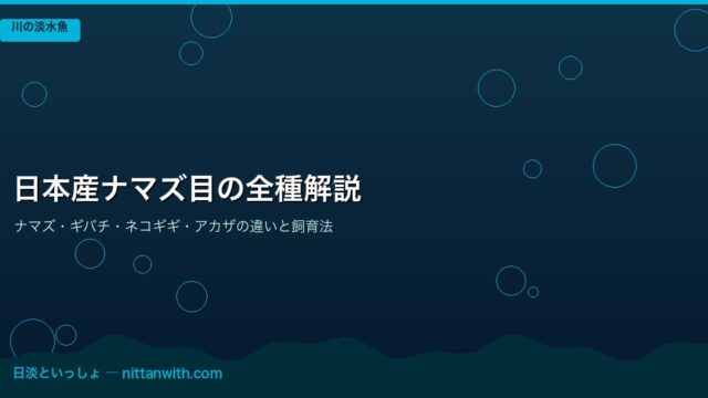 川の淡水魚 日本産ナマズ目の全種解説【ナマズ・ギバチ・ネコギギ・アカザの違いと飼育法】 2026年3月26日 nittantoissyo 日淡といっしょ この記事でわかること 日本に生息するナマズ目の全種(ナマズ・ギバチ・ネコギギ・アカザ・ビワコオオナマズ・イワトコナマズ)の特徴と見分 …
