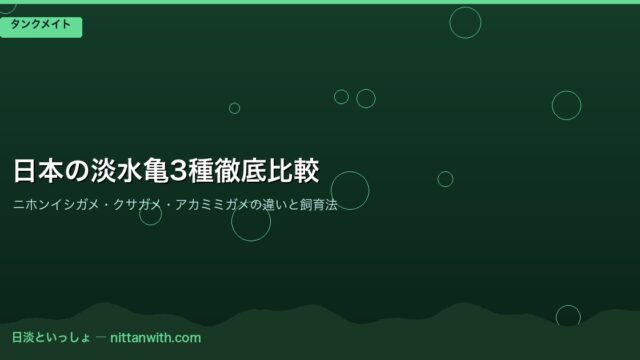 タンクメイト 日本の淡水亀3種徹底比較【ニホンイシガメ・クサガメ・アカミミガメの違いと飼育法】 2026年3月26日 nittantoissyo 日淡といっしょ 「この亀、ニホンイシガメ?クサガメ?それともミドリガメ?」 川や池で亀を見かけたとき、こんなふうに首をかしげたことはありませんか?日本 …