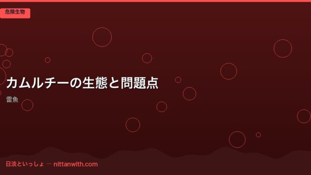 危険生物 カムルチー(雷魚)の生態と問題点【空気呼吸する外来魚の影響と現状】 2026年3月26日 nittantoissyo 日淡といっしょ 「カムルチー? 雷魚のことでしょ? あの怖い魚……」 友人にカムルチーの話をすると、たいていこんな反応が返ってきます。「凶暴そう」「外来魚 …