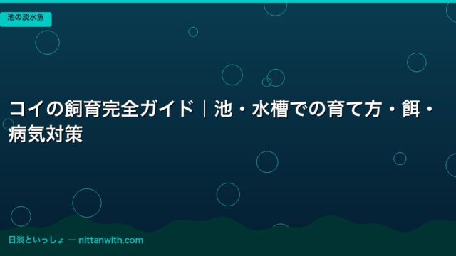 池の淡水魚 コイの飼育完全ガイド|池・水槽での育て方・餌・病気対策 2026年3月30日 nittantoissyo 日淡といっしょ この記事でわかること コイの基本的な生態・特徴と日本での分布 池・水槽それぞれの飼育環境の整え方 コイに最適な餌の種類と与え …