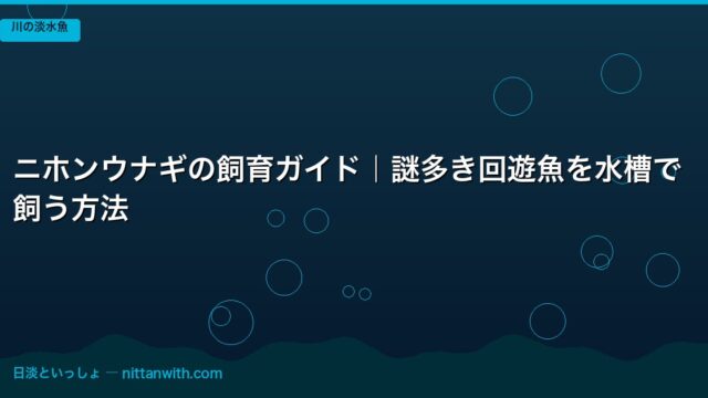 川の淡水魚 ニホンウナギの飼育ガイド|謎多き回遊魚を水槽で飼う方法 2026年3月30日 nittantoissyo 日淡といっしょ この記事でわかること ニホンウナギの生態・生活史と「謎多き回遊魚」と呼ばれる理由 水槽での飼育方法(環境設定・水質管理・えさやり …
