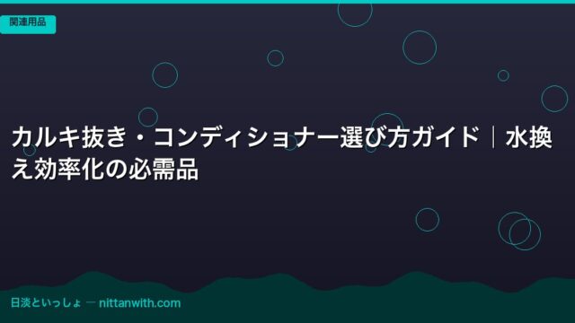 淡水魚関連用品 カルキ抜き・コンディショナー選び方ガイド|水換え効率化の必需品 2026年4月20日 nittantoissyo 日淡といっしょ 「カルキ抜きってどれを選べばいいの?」「コンディショナーって必要なの?」「ハイポの汲み置きで十分じゃないの?」――水槽の水換えや立ち上げで、 …