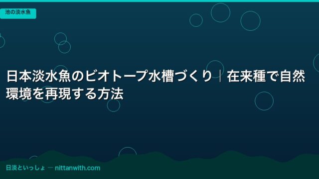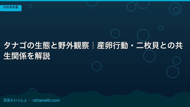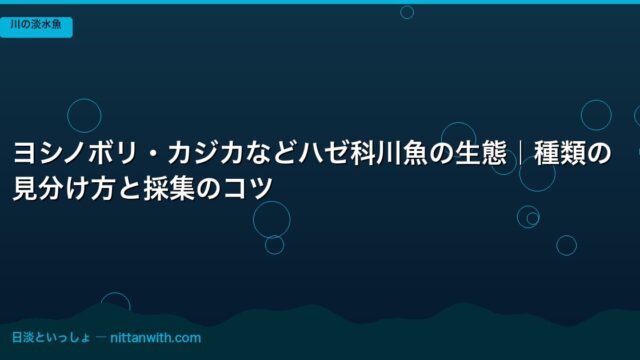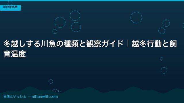 川の淡水魚 冬越しする川魚の種類と観察ガイド|越冬行動と飼育温度 2026年4月20日 nittantoissyo 日淡といっしょ この記事でわかること 冬越しできる川魚の種類(カワムツ・オイカワ・ウグイ・ドジョウ・タナゴ・モロコなど)と耐寒性の違い 水温別の活性変化 …