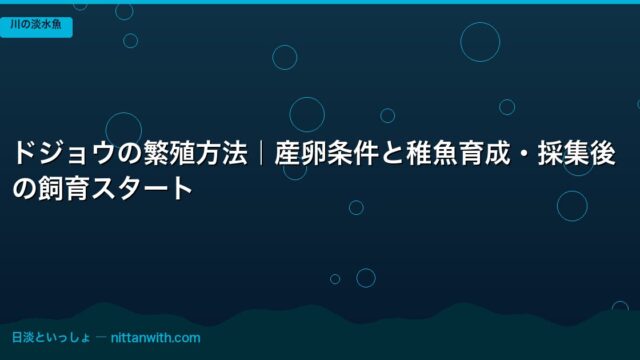 川の淡水魚 ドジョウの繁殖方法|産卵条件と稚魚育成・採集後の飼育スタート 2026年4月4日 nittantoissyo 日淡といっしょ この記事でわかること ドジョウを繁殖させるための水温・季節条件と室内での再現方法 産卵・孵化・稚魚育成の具体的な手順と注意点 …