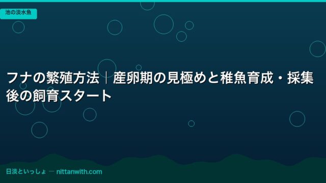 池の淡水魚 フナの繁殖方法|産卵期の見極めと稚魚育成・採集後の飼育スタート 2026年4月4日 nittantoissyo 日淡といっしょ この記事でわかること フナの繁殖に適した時期・産卵期の見極め方 産卵の準備から稚魚の育成まで全ステップ 採集してきたフナの飼 …