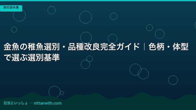 池の淡水魚 金魚の稚魚選別・品種改良完全ガイド|色柄・体型で選ぶ選別基準 2026年4月16日 nittantoissyo 日淡といっしょ この記事でわかること 金魚の稚魚選別の基本的な考え方と具体的な判断基準 体型・色柄・ヒレの形状による選別ポイント 品種ごとの …
