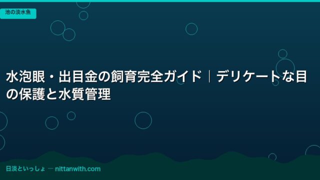 池の淡水魚 水泡眼・出目金の飼育完全ガイド|デリケートな目の保護と水質管理 2026年4月16日 nittantoissyo 日淡といっしょ この記事でわかること 水泡眼・出目金の基本的な特徴と生態 デリケートな目を守るための水槽レイアウトの考え方 最適な水質・水温 …