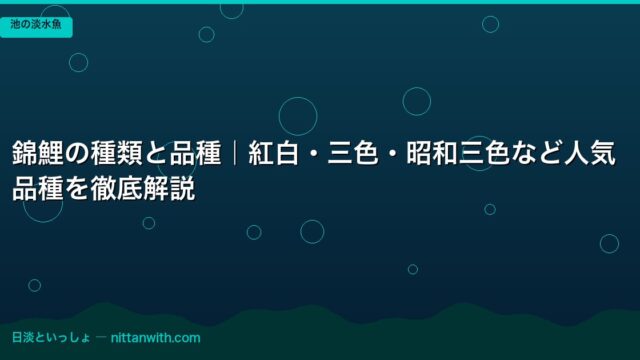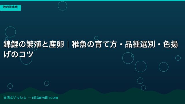 池の淡水魚 錦鯉の繁殖と産卵|稚魚の育て方・品種選別・色揚げのコツ 2026年4月4日 nittantoissyo 日淡といっしょ この記事でわかること 錦鯉の繁殖に適した環境づくりと必要な設備 産卵・孵化・稚魚育成の具体的な手順 品種選別のポイントと色揚 …