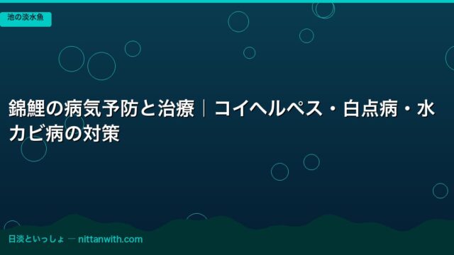 池の淡水魚 錦鯉の穴あき病・潰瘍症状の治療法|早期発見と薬浴プロトコル 2026年4月17日 nittantoissyo 日淡といっしょ この記事でわかること 錦鯉の穴あき病・潰瘍症状の原因菌と進行ステージごとの見分け方 エルバージュエース・観パラD・グリーンFゴールド顆粒 …