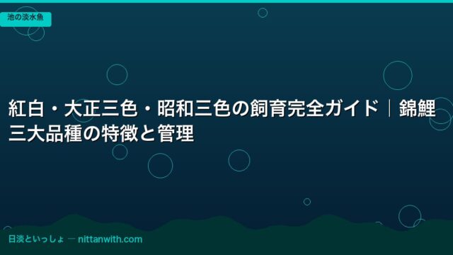 池の淡水魚 紅白・大正三色・昭和三色の飼育完全ガイド|錦鯉三大品種の特徴と管理 2026年4月16日 nittantoissyo 日淡といっしょ この記事でわかること 紅白・大正三色・昭和三色それぞれの特徴と見分け方 三大品種の選び方・購入時のチェックポイント 飼育環境 …