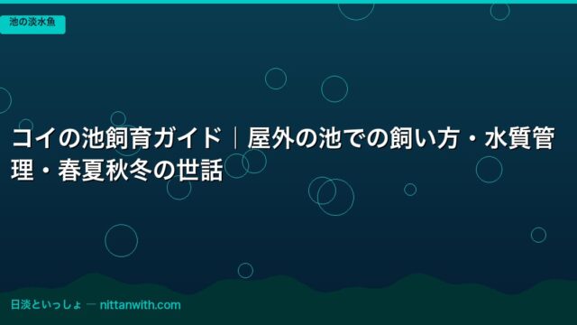 池の淡水魚 コイの池飼育ガイド|屋外の池での飼い方・水質管理・春夏秋冬の世話 2026年4月4日 nittantoissyo 日淡といっしょ この記事でわかること コイを屋外の池で飼育するための基本セットアップと必要な設備 春夏秋冬それぞれの季節ごとの世話・餌やり・水質 …
