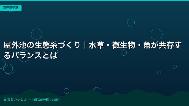 池の淡水魚 夏の池管理完全ガイド|酸欠・水温上昇・藻類対策 2026年4月17日 nittantoissyo 日淡といっしょ この記事でわかること 猛暑(35℃超)下での池・ベランダプラ舟の水温管理の具体的手順 日陰作り(よしず・遮光ネット・すだれ)の使い分けと …