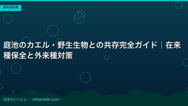 池の淡水魚 庭池のカエル・野生生物との共存完全ガイド|在来種保全と外来種対策 2026年4月16日 nittantoissyo 日淡といっしょ この記事でわかること 庭池・メダカ鉢に訪れる在来カエル・野生生物の種類と特徴 アマガエルやトノサマガエルとメダカ・稚魚の共存方法 …