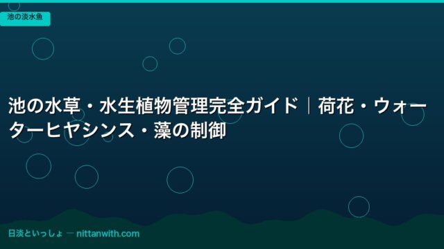 池の淡水魚 池の水草・水生植物管理完全ガイド|荷花・ウォーターヒヤシンス・藻の制御 2026年4月16日 nittantoissyo 日淡といっしょ この記事でわかること 池・プラ舟・ビオトープで育てる水草・水生植物の種類と特徴 ホテイアオイ・ウォーターヒヤシンス・睡蓮など代表 …