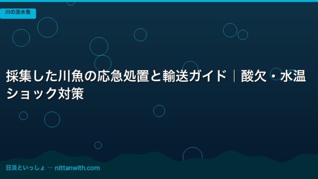 川の淡水魚 採集した川魚の応急処置と輸送ガイド|酸欠・水温ショック対策 2026年4月20日 nittantoissyo 日淡といっしょ この記事でわかること 採集した川魚を無事に持ち帰るための応急処置フロー 酸欠・水温ショック・粘膜損傷など「持ち帰り三大リスク」の予防策 …