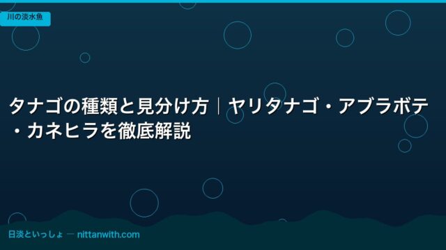 川の淡水魚 タナゴの種類と見分け方|ヤリタナゴ・アブラボテ・カネヒラを徹底解説 2026年4月4日 nittantoissyo 日淡といっしょ この記事でわかること 日本に生息するタナゴの種類一覧と各種の特徴・見分け方 ヤリタナゴ・アブラボテ・カネヒラなど主要種の違いを詳しく解説 …