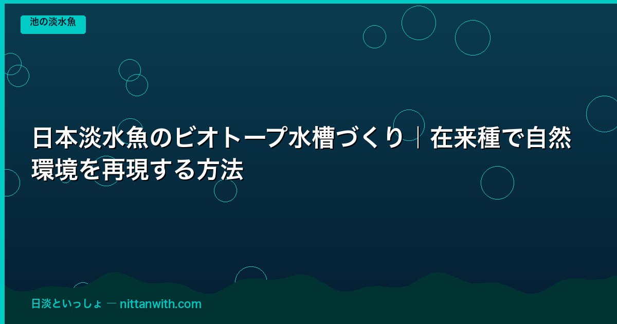 この記事では、日本淡水魚のビオトープ水槽を作るうえで必要なすべての知識——コンセプトの決め方、底砂・石・水草の選び方、魚の組み合わせ、機材設定、日常管理まで——を徹底的に解説します。これから初めて挑戦する方も、すでに経験のある方も、より完成度の高いビオトープ水槽づくりのヒントを見つけていただければ幸いです。