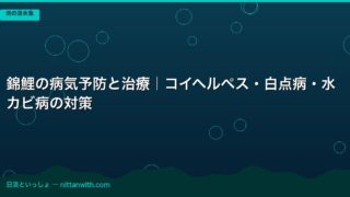 - 白点病・尾ぐされ病:病魚を隔離し、塩水浴または市販薬で治療する