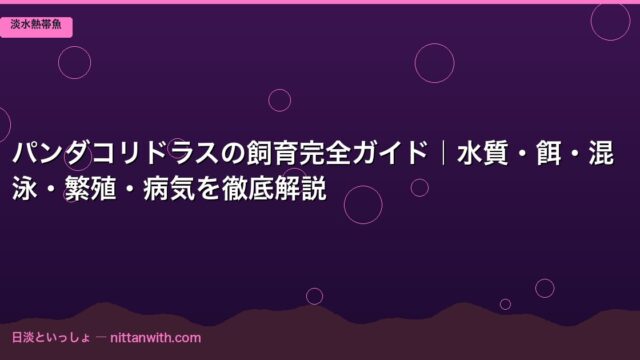 淡水熱帯魚 パンダコリドラスの飼育完全ガイド|水質・餌・混泳・繁殖・病気を徹底解説 2026年3月24日 nittantoissyo 日淡といっしょ 「底を這うように泳ぐ、愛嬌たっぷりなあの子が気になる…」そう感じたことはありませんか?熱帯魚ショップで水槽の底に群れてチョコチョコ動いて …