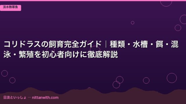 淡水熱帯魚 コリドラスの飼育完全ガイド|種類・水槽・餌・混泳・繁殖を初心者向けに徹底解説 2026年3月24日 nittantoissyo 日淡といっしょ コリドラスの飼育完全ガイド|種類・水槽・餌・混泳・繁殖を初心者向けに徹底解説 アクアリウムを始めたばかりの方でも、一度は「コ …
