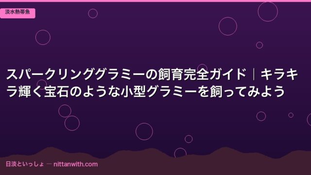 淡水熱帯魚 スパークリンググラミーの飼育完全ガイド|キラキラ輝く宝石のような小型グラミーを飼ってみよう 2026年3月24日 nittantoissyo 日淡といっしょ 水槽の中でキラキラと青緑色に輝く、体長3〜4cmの小さな宝石——それがスパークリンググラミーです。 私が初めてスパークリンググラミーを …