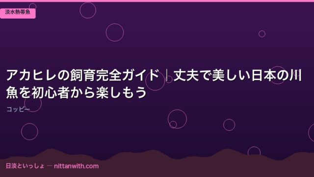 淡水熱帯魚 アカヒレ(コッピー)の飼育完全ガイド|丈夫で美しい日本の川魚を初心者から楽しもう 2026年3月24日 nittantoissyo 日淡といっしょ アカヒレ(コッピー)の飼育完全ガイド|丈夫で美しい日本の川魚を初心者から楽しもう 「アクアリウムを始めたいけど、何の魚から …