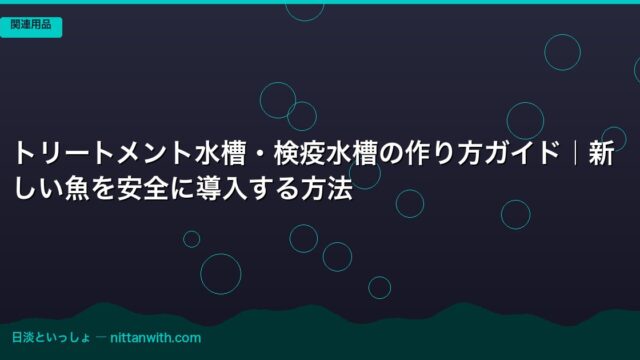 淡水魚関連用品 トリートメント水槽・検疫水槽の作り方ガイド|新しい魚を安全に導入する方法 2026年3月25日 nittantoissyo 日淡といっしょ 「やっと念願の魚をお迎えできた!」と喜んで本水槽に入れたら、数日後に白い点々が…なんて経験、ありませんか?私がまだアクアリウムを始めた …