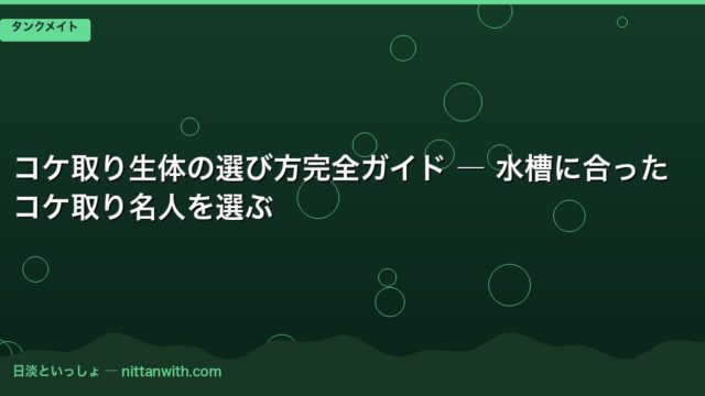 タンクメイト コケ取り生体の選び方完全ガイド ― 水槽に合ったコケ取り名人を選ぶ 2026年3月25日 nittantoissyo 日淡といっしょ 水槽のガラス面や水草に、いつの間にかびっしりついてしまうコケ。毎週せっせとスクレーパーで擦っても、数日後にはまたうっすら緑になっている…… …