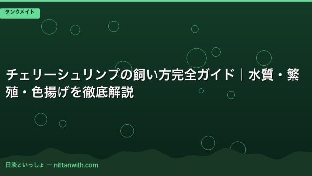 タンクメイト チェリーシュリンプの飼い方完全ガイド|水質・繁殖・色揚げを徹底解説 2026年3月25日 nittantoissyo 日淡といっしょ 水槽の中で鮮やかな赤色がゆらゆらと動く姿――それがチェリーシュリンプです。私が初めてチェリーシュリンプを迎えたのは、タナゴ水槽のコケ掃除係 …