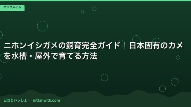 タンクメイト ニホンイシガメの飼育完全ガイド|日本固有のカメを水槽・屋外で育てる方法 2026年3月25日 nittantoissyo 日淡といっしょ ニホンイシガメは、日本にしか生息しない固有種のカメです。幼いころから川や池で見かけ、その愛らしい姿に魅了されてきた方も多いのではない …