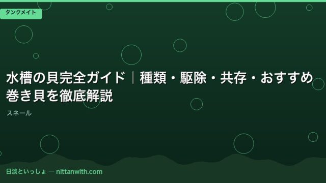 タンクメイト 水槽の貝(スネール)完全ガイド|種類・駆除・共存・おすすめ巻き貝を徹底解説 2026年3月24日 nittantoissyo 日淡といっしょ 水槽に貝を入れたら、気づけばコケがピカピカになっていた——そんな経験、ありませんか?私がアクアリウムを始めた頃、60cm水槽の壁面が緑色の …