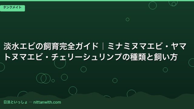 タンクメイト 淡水エビの飼育完全ガイド|ミナミヌマエビ・ヤマトヌマエビ・チェリーシュリンプの育て方を徹底解説 2026年3月24日 nittantoissyo 日淡といっしょ この記事でわかること ミナミヌマエビ・ヤマトヌマエビ・チェリーシュリンプの基本的な特徴と違い 淡水エビの水槽セットアップと適切な …