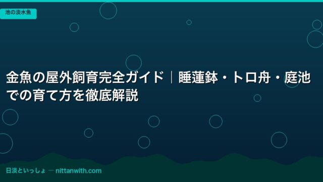 池の淡水魚 金魚の屋外飼育完全ガイド|睡蓮鉢・トロ舟・庭池での育て方を徹底解説 2026年3月25日 nittantoissyo 日淡といっしょ 金魚の屋外飼育に憧れたことはありませんか?縁側に睡蓮鉢を置いて、涼し気に泳ぐ金魚を眺める——そんな日本の夏の情景に、私は何度も心を奪われて …