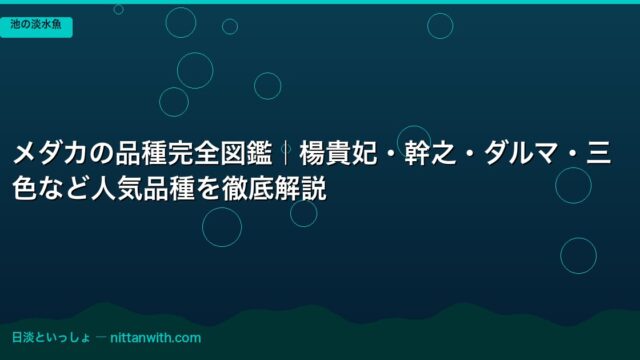 池の淡水魚 メダカの品種完全図鑑|楊貴妃・幹之・ダルマ・三色など人気品種を徹底解説 2026年3月24日 nittantoissyo 日淡といっしょ メダカを飼い始めて10年以上が経ちますが、最初に飼ったのは近所の川で捕まえた普通の黒メダカでした。それがいつの間にか、楊貴妃、幹之、三色、ダ …