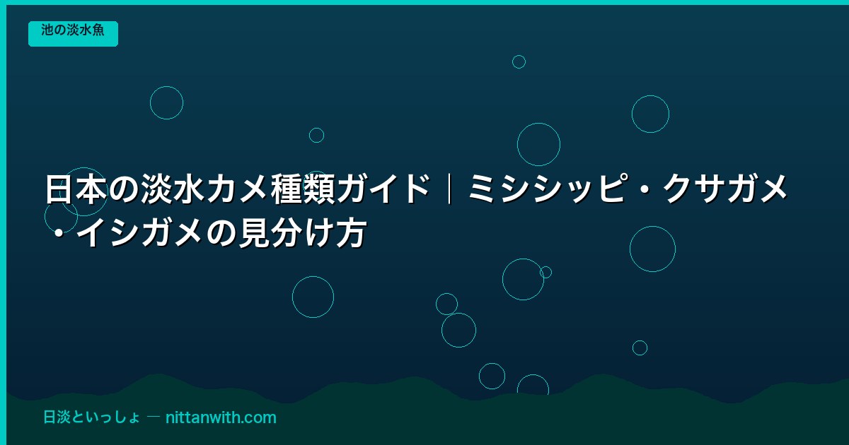 日本の本州・四国・九州地方で最もよく見かける淡水カメは次の3種です。ニホンイシガメ、クサガメ、そしてミシシッピアカミミガメです。これらは生息域が重なり、同じ池や川で混在して生活していることも珍しくありません。