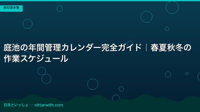 秋(9〜11月)の管理:水温が下がり始めたら、給餌量を徐々に減らします。水温が15℃以下になると消化機能が低下するため、消化しやすい餌(低タンパク・低脂肪)に切り替えることをおすすめします。