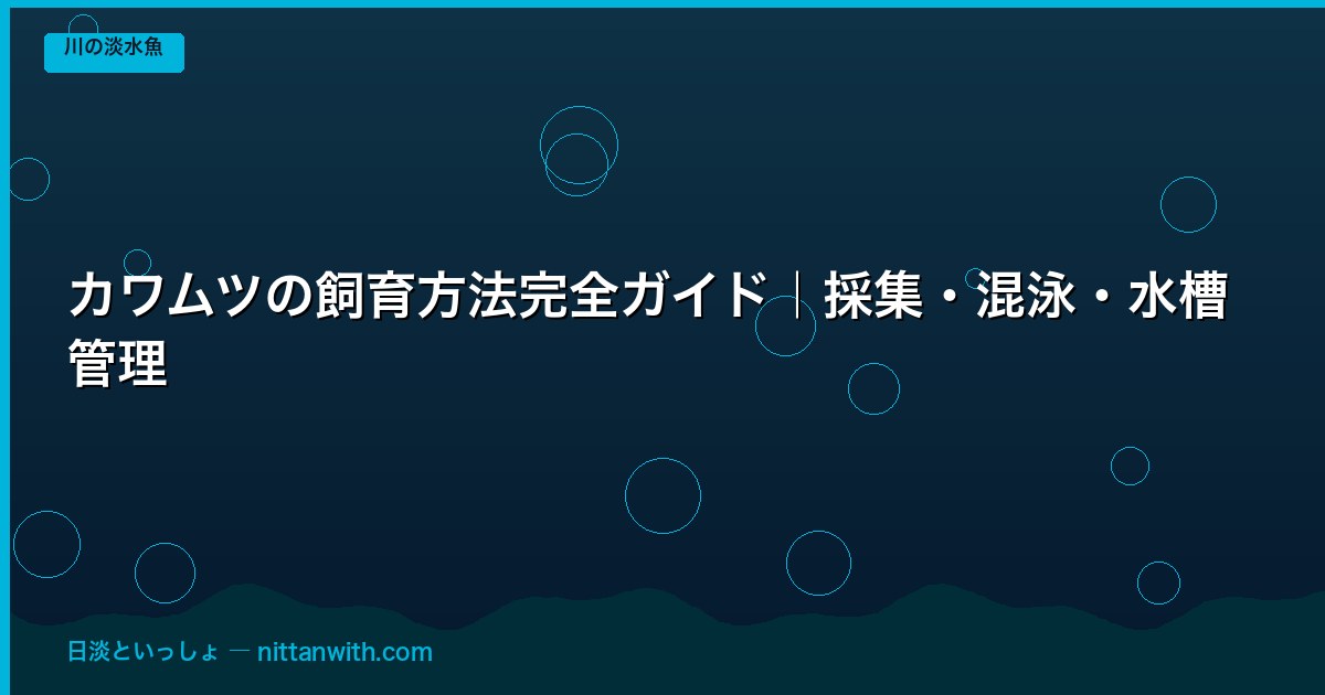 カワムツ飼育では水質の急変を防ぐことが最優先です。水換えは週1回・全水量の1/3程度を目安に、水温をあらかじめ合わせてから注水してください。冬場(水温15℃以下)はカワムツの活動が低下し消化機能も落ちるため、餌の量を夏場の半分以下に抑えると消化不良を防げます。これらの基本を押さえておくだけで、カワムツは5年以上元気に暮らしてくれます。