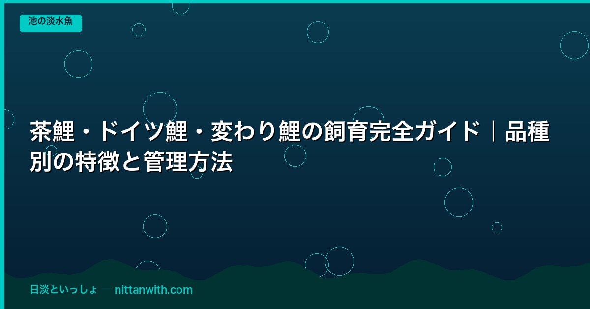 いずれも基本的な飼育方法は錦鯉全般と共通していますが、それぞれの品種特性を理解した上で管理することで、長期的に健康で美しい姿を維持できます。特にドイツ鯉の傷への弱さ、チャゴイの人懐っこさを活かしたリーダー効果の活用、変わり鯉の色変化を楽しむ記録法など、品種固有のポイントを押さえてください。