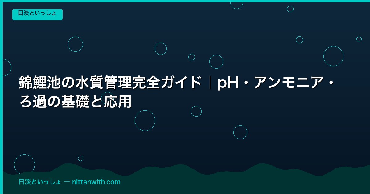 錦鯉の池で一番大切なのは「水の管理」です。水温・pH・アンモニア・亜硝酸塩・硝酸塩・溶存酸素……これだけのパラメーターが同時に鯉の命に関わっています。でも、正しい知識があれば怖くありません。