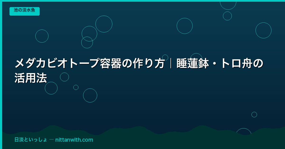 メダカのビオトープは「容器+底砂+水草+メダカ」という基本4要素で成り立っています。この中で最も重要なのが「容器選び」です。容器のサイズ・素材・形によって水温の安定性・観察しやすさ・繁殖のしやすさが大きく変わります。睡蓮鉢の重厚感ある和の雰囲気、トロ舟のシンプルな実用性、プランターの手軽さ——それぞれに長所と短所があり、目的や置き場所に合わせて選ぶことがビオトープ成功への近道です。