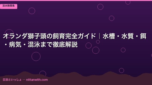 淡水熱帯魚 オランダ獅子頭の飼育完全ガイド|水槽・水質・餌・病気・混泳まで徹底解説 2026年3月24日 nittantoissyo 日淡といっしょ 金魚の中でも、あの愛嬌たっぷりの頭の肉瘤に一目惚れしてしまった方は多いのではないでしょうか。私が初めてオランダ獅子頭を迎えたのは5年ほど前 …