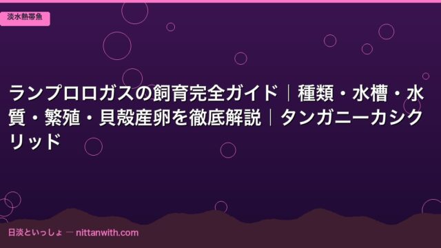 淡水熱帯魚 ランプロロガスの飼育完全ガイド|種類・水槽・水質・繁殖・貝殻産卵を徹底解説|タンガニーカシクリッド 2026年3月24日 nittantoissyo 日淡といっしょ 「ランプロロガスって飼いやすいの?」「貝殻の中に産卵するって本当?」―― 初めてタンガニーカシクリッドに興味を持った方なら、こんな疑問が …