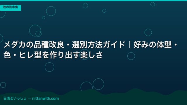 池の淡水魚 メダカの品種改良・選別方法ガイド|好みの体型・色・ヒレ型を作り出す楽しさ 2026年3月25日 nittantoissyo 日淡といっしょ 「いつか自分だけのオリジナル品種を作りたい」——メダカを飼い始めて少し経つと、誰もが一度はそう思うはずです。私もそうでした。最初は楊貴妃 …