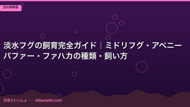淡水熱帯魚 淡水フグの飼育完全ガイド|ミドリフグ・アベニーパファー・ファハカの種類・飼い方 2026年3月24日 nittantoissyo 日淡といっしょ 「フグを飼ってみたい!」そう思ったことはありませんか?あの丸くてぷっくりとした体、クリクリと動く大きな瞳、そして独特のユーモラスな泳ぎ方 …