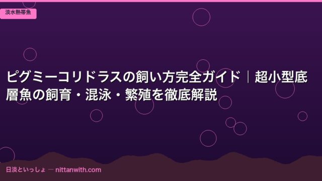 淡水熱帯魚 ピグミーコリドラスの飼い方完全ガイド|超小型底層魚の飼育・混泳・繁殖を徹底解説 2026年3月25日 nittantoissyo 日淡といっしょ 「水槽の底をちょこちょこ歩く小さなコリドラスが可愛い!」と思ったことはありませんか?コリドラスの仲間の中でも最小クラスのピグミーコリドラ …