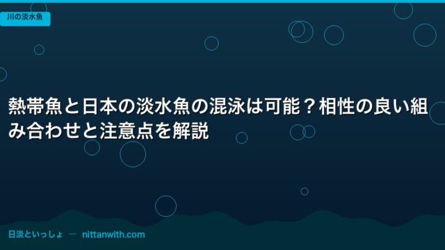 川の淡水魚 熱帯魚と日本の淡水魚の混泳は可能?相性の良い組み合わせと注意点を解説 2026年3月25日 nittantoissyo 日淡といっしょ 「熱帯魚水槽にオイカワを入れたらどうなるだろう?」「コリドラスとメダカって一緒に飼えるの?」――そんな好奇心、アクアリストなら一度は抱いた …