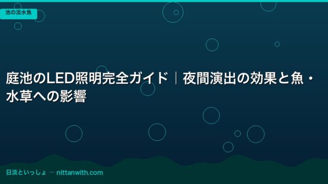 池の淡水魚 庭池のLED照明完全ガイド|夜間演出の効果と魚・水草への影響 2026年4月15日 nittantoissyo 日淡といっしょ 「庭池って夜になると真っ暗で、せっかくの魚が見えなくなってしまう……」「池に照明を入れたいけど、魚や水草に悪い影響がないか心配」――そんな悩 …